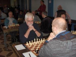 In de eerste ronde waren zowel Gerard als Willem ingedeeld tegen IMs, wat normaal gesproken een onmogelijke opgave is. Dick en ik speelden ook tegen sterkere tegenstanders. Alleen Erik had op papier een partij die gewonnen moest kunnen worden, wat hij dan ook deed. Willem’s tegenstander bleek nog niet aanwezig te zijn en na een uur kreeg hij alsnog een andere partij te spelen met aangepaste speelduur. Hoewel de nieuwe opponent een lagere rating had, kon Willem helaas niet de nul voorkomen. Gerard, Dick en ik verloren volgens verwachting. Over mijn partij wil ik niet te veel kwijt, want ondanks dat ik achteraf de partij heb nagekeken heb ik nog geen idee hoe ik de aanval die ik over me heen kreeg had moeten pareren en ik wil de geachte lezers van dit verslag geen suggesties aanreiken om mijn Leeuw aan te pakken…..