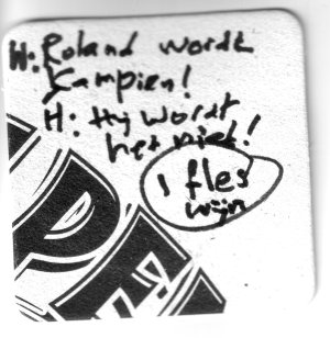 W = Willem Punt, beweert dat Roland (Punt) clubkampioen van de Waagtoren 2007-2008 wordt. (Met een vinger in de neus).
